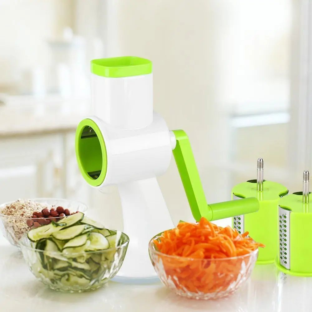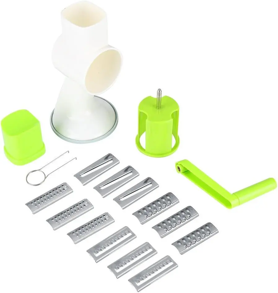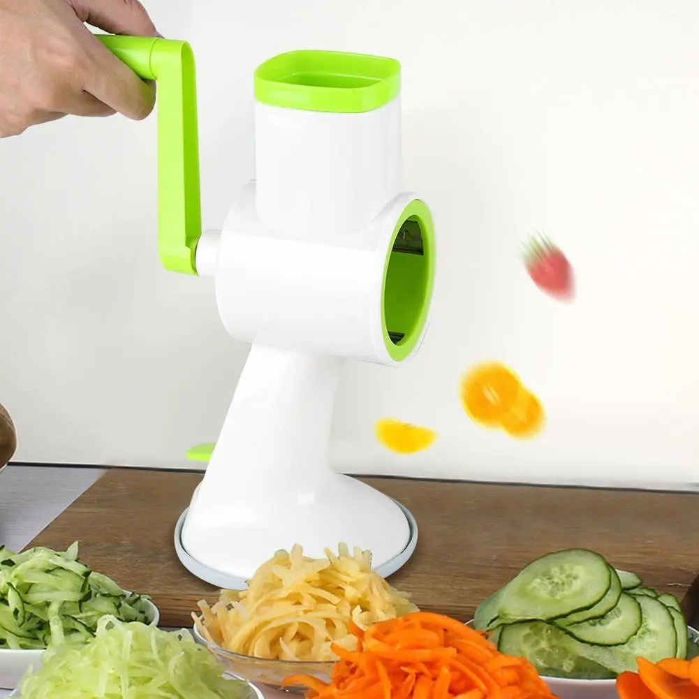 Haz que la preparación de tus alimentos sea rápida y sencilla con el Cortador Rotativo Multifuncional 4 en 1 Manual. Este práctico accesorio es ideal para cortar frutas, verduras, queso y mucho más, ofreciendo cuatro tipos de corte.