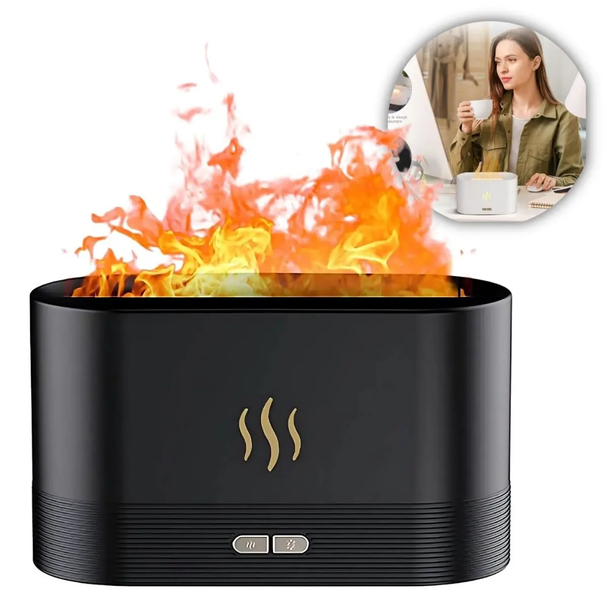 .Efecto Llama Realista: Simula una cálida llama danzante, creando una atmósfera acogedora que mejora el bienestar y reduce el estrés. Añade 3-5 gotas de tus aceites esenciales favoritos para aliviar la fatiga, hidratar tu piel y garantizar un ambiente agradable para que te relajes.